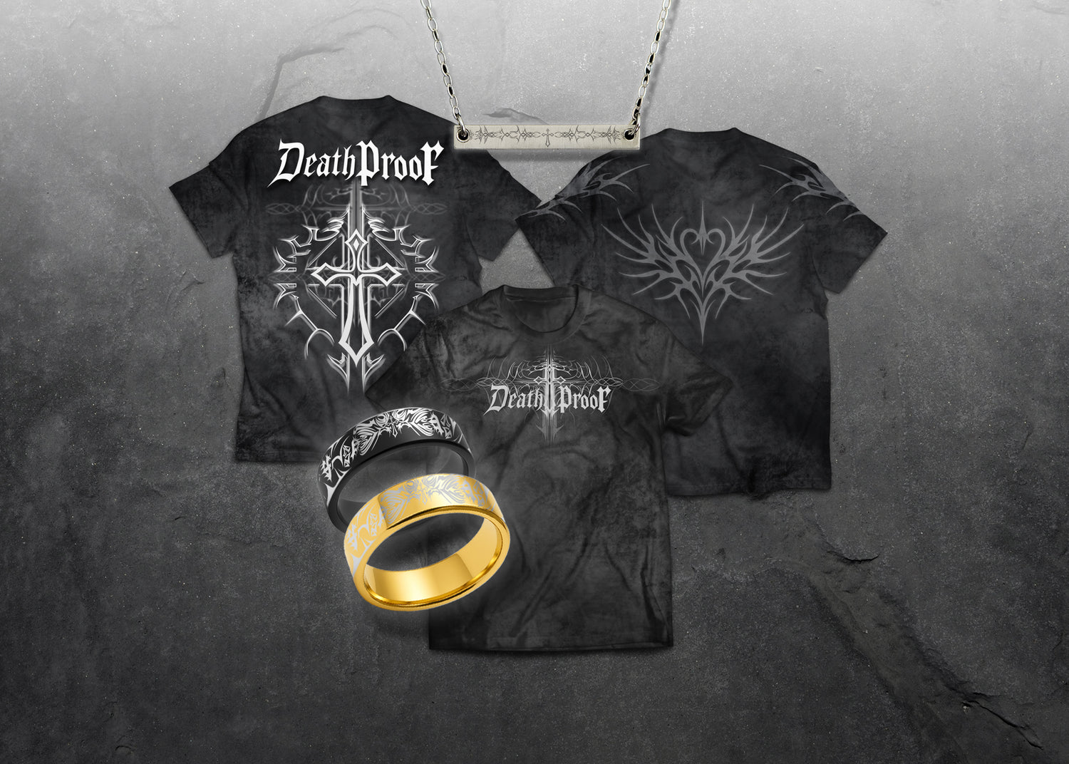 Forged in the space between shadow and survival, DeathProof began as a symbol for those who’ve lived through the worst and chose to keep going. We believe the deepest scars make the sharpest art. Every piece we design is a relic of resilience, wrapped in cyber-sigilism, Y2K nostalgia, and unapologetic identity.